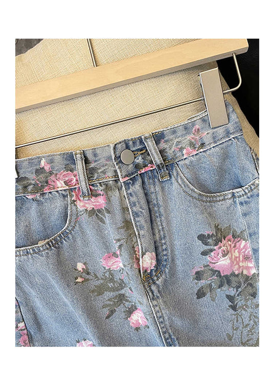 Rose Denim Skirt