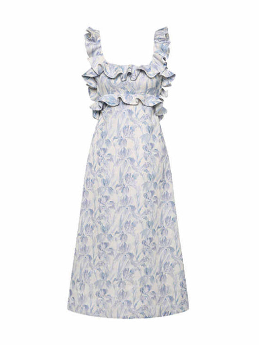 Floral Backless Ruffled Coquette Dress