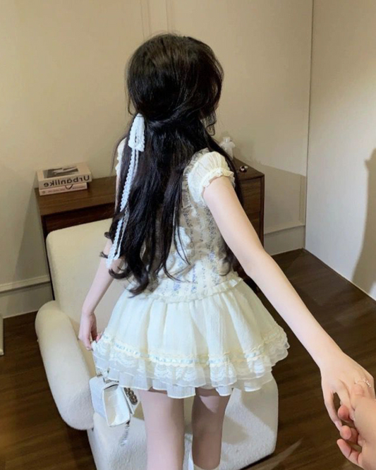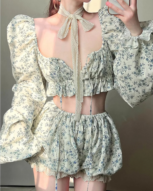 French Sweet Floral Chic Puff Coord