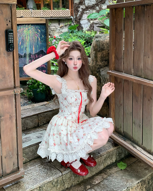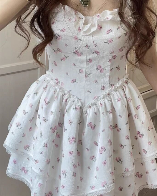 Spring Fresh Slim-fitting Suspender Mini Coquette Dress