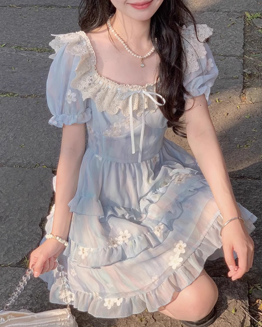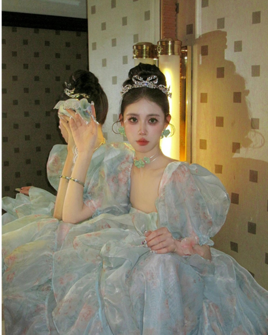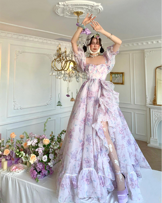 Prom Puff Sleeve Fairy Princess Floral Dress