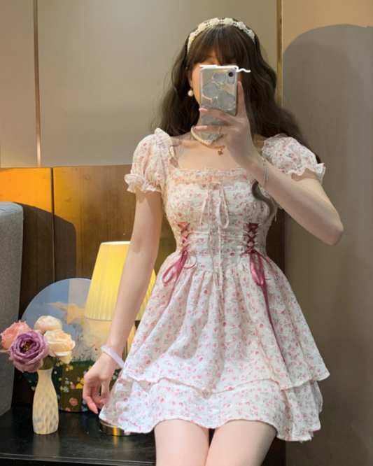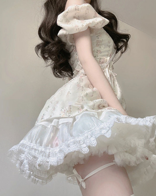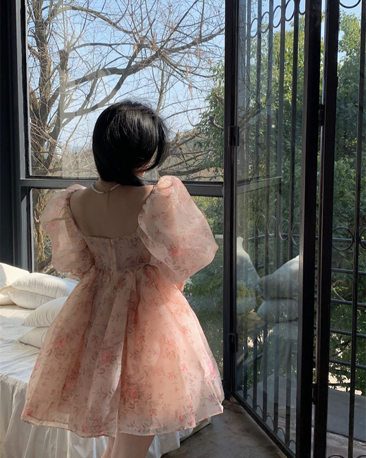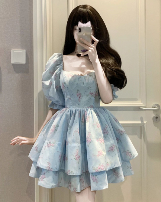 Princess Puff Sleeves Tutu Floral Mini Floral Dress