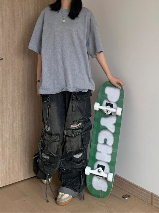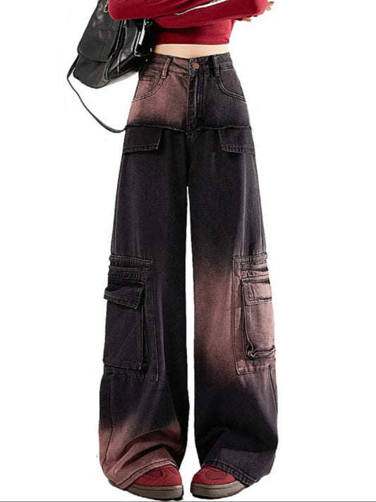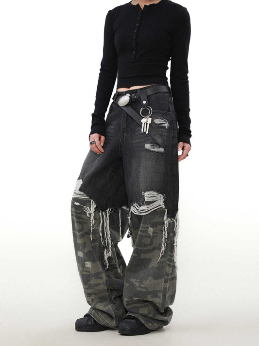 Grunge Camouflage Splicing Tassel Ripped Jeans