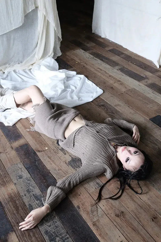 Grunge Distressed Cardigan & Mini Skirt Two Piece Coord