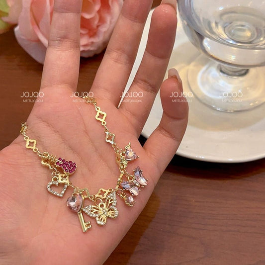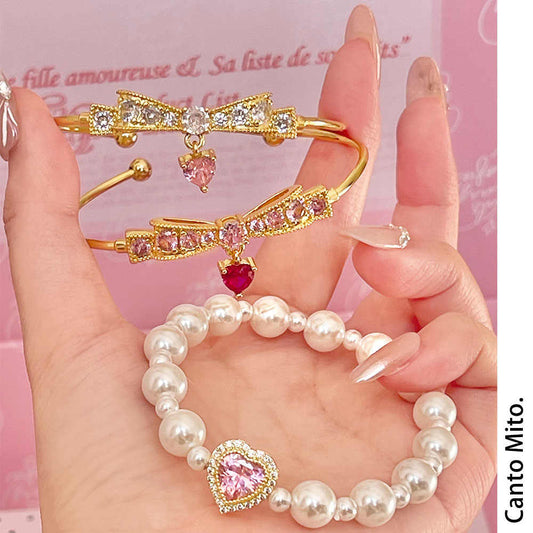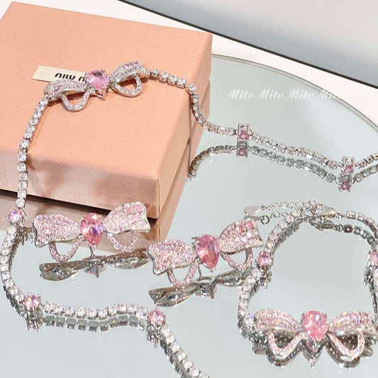 Princess Pink Diamond Bow Earrings Necklace Bracelet
