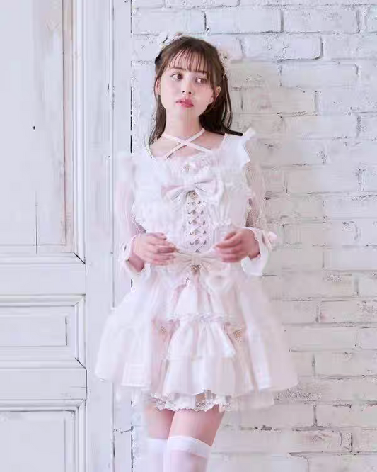 Pure Cotton Love Bow Hollow Lace Suspender Dress
