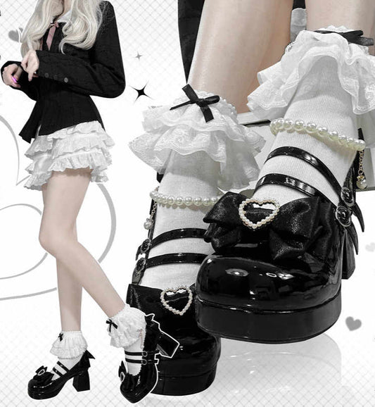Lolita Bow Pearls Mary Jane Shoes