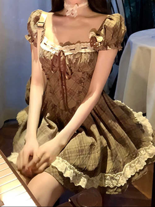 French Retro Puff Sleeves Dress
