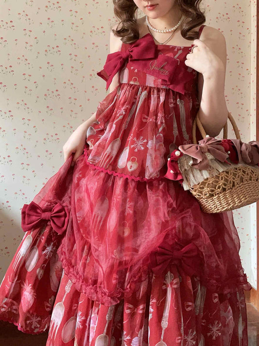Burgundy Lolita Mesh Bows Lolita Dress