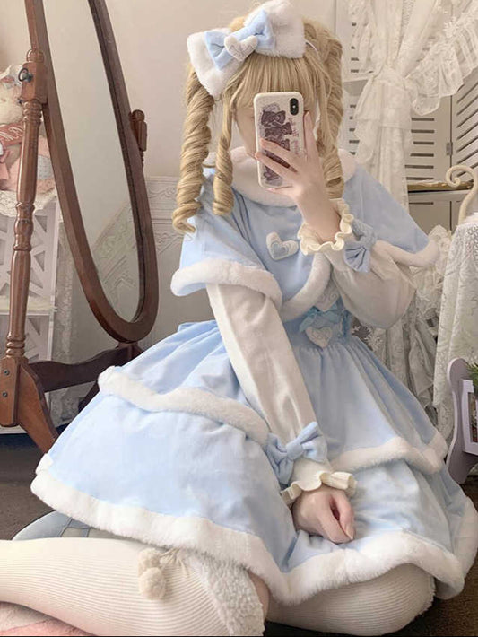 Kawaii Winter Cape Shawl Coat Dress Set