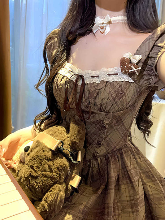 Cherry Red Plaid Lace Cake Dress
