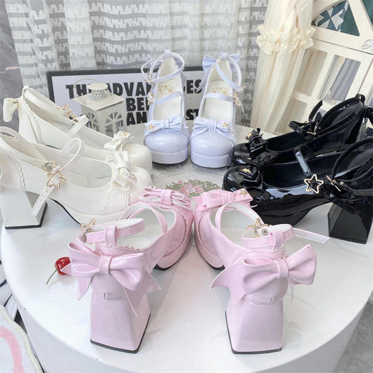 Stars Bows Thick-Heel Platform Shoes