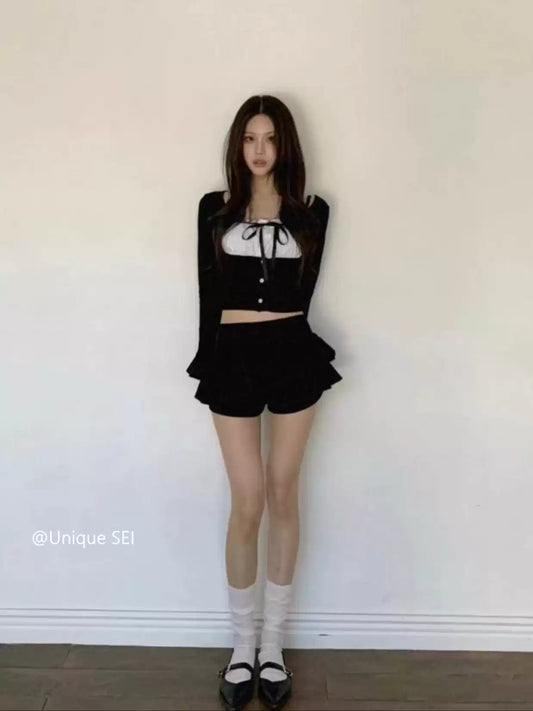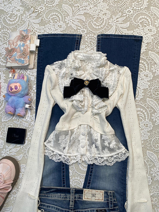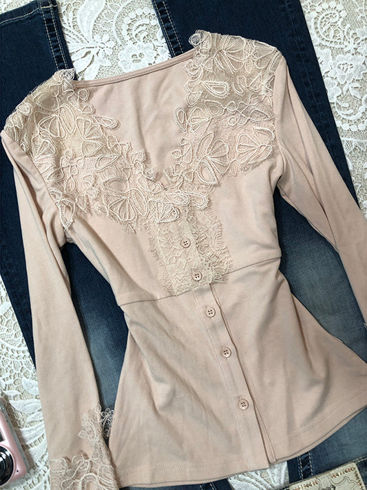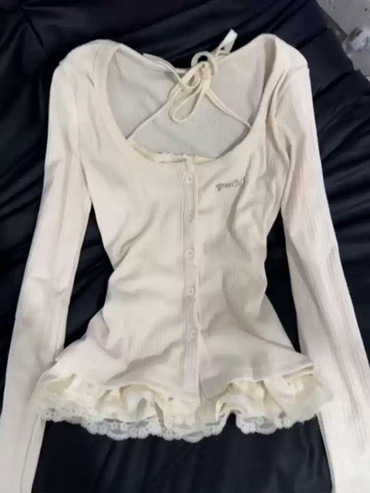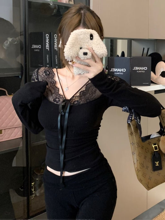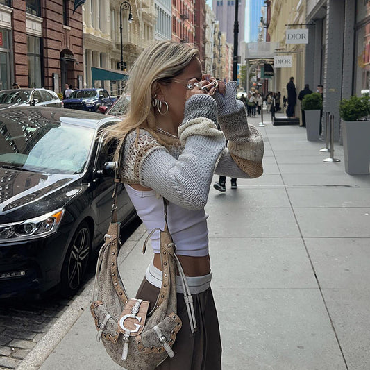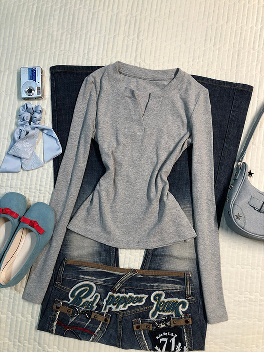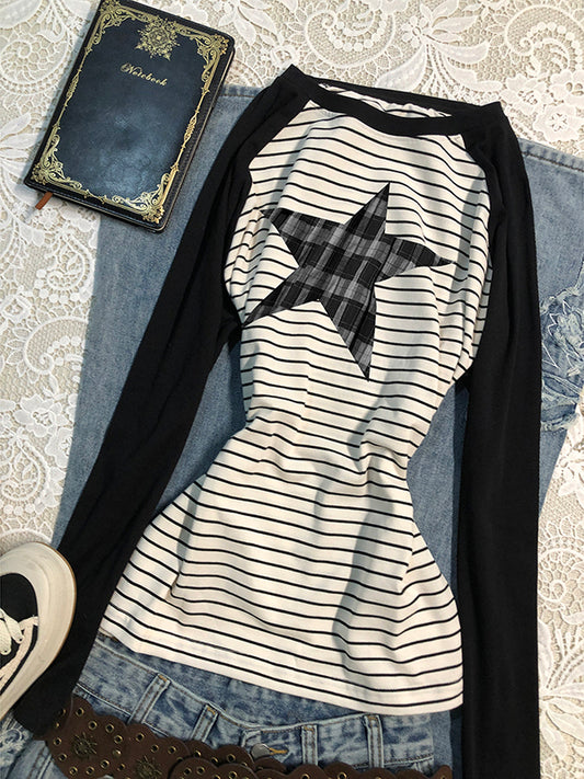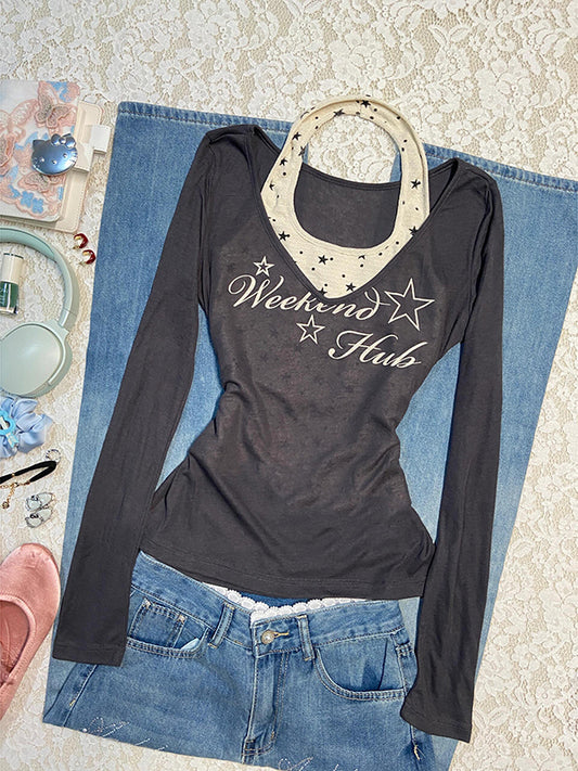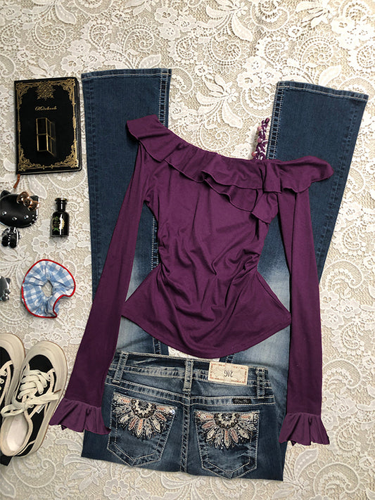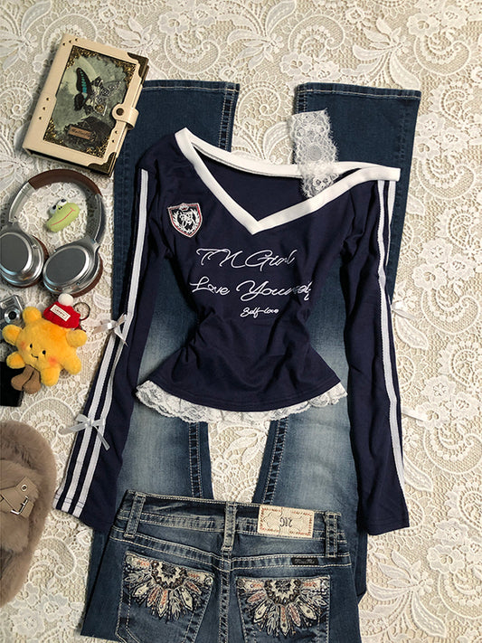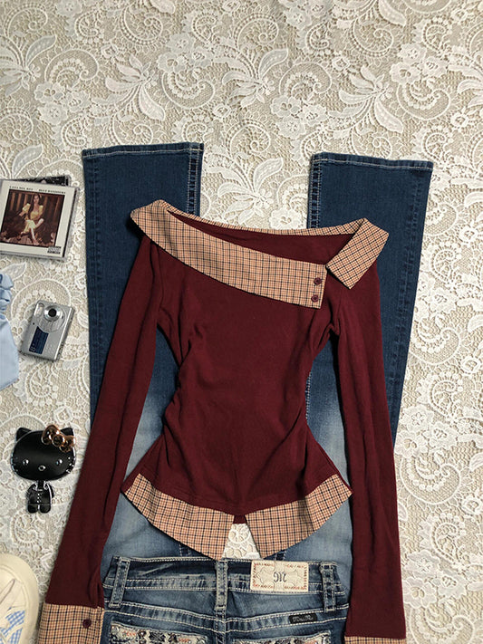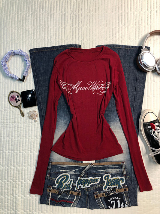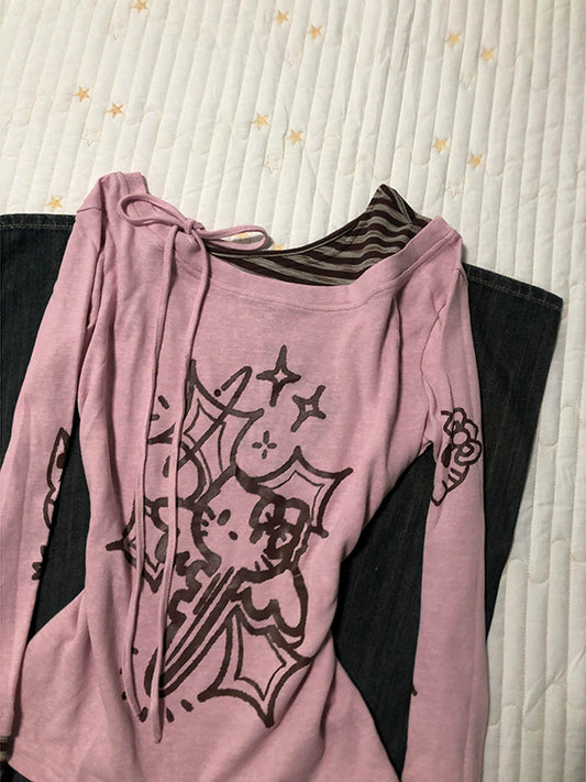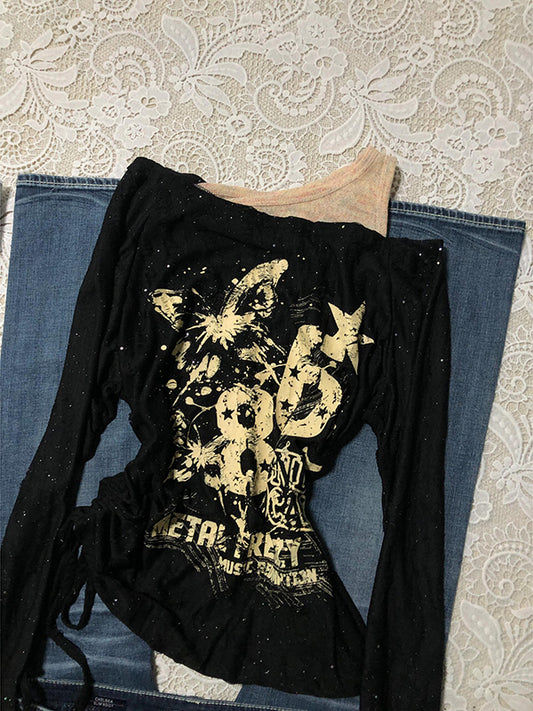 American retro butterfly graffiti off-shoulder long-sleeved top