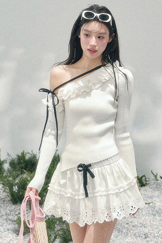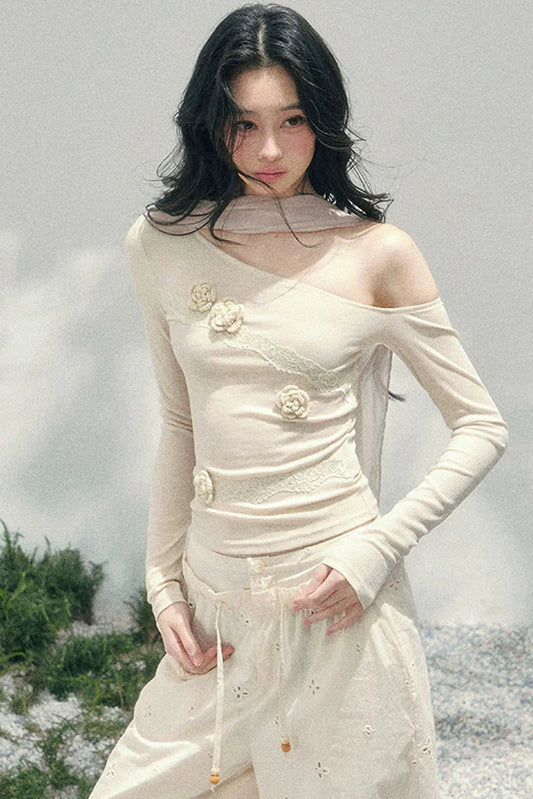 One-Shoulder Glance Lace Border Top