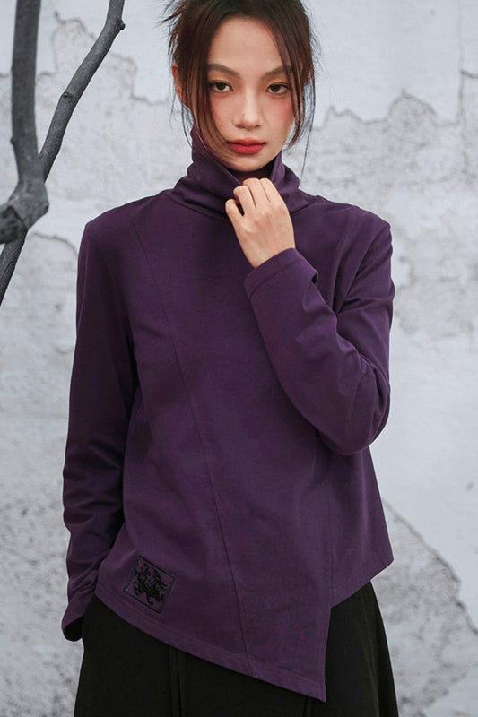 Edgy Purple Turtleneck Top