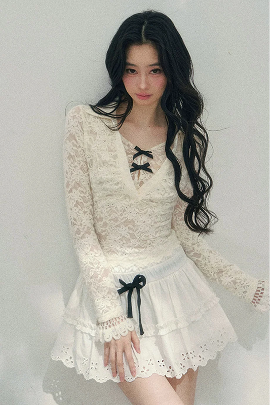Balletcore Aesthetic Bow Mesh Top