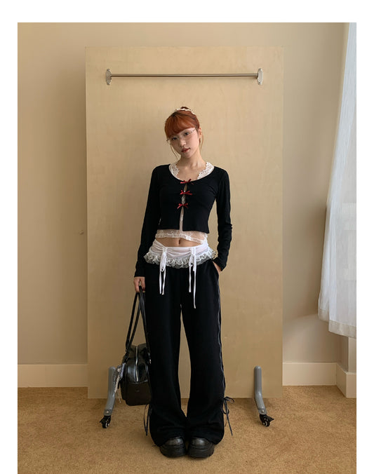 Coquette Bow Fluffy Pink Long Sleeve Top
