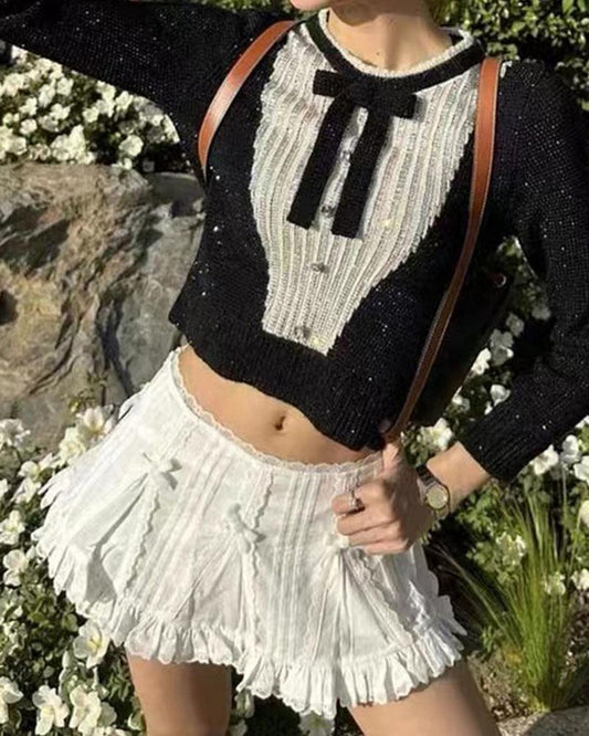 Bow Lace Retro Versatile A-line Skirt