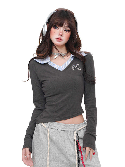 Fairy Grunge Rhinestones Sheer Long Sleeve Top