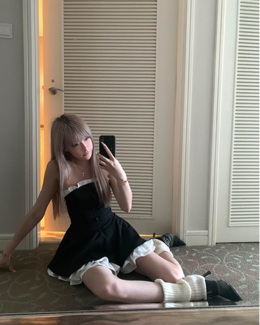 Tulle Romantic Smudged Lace-up Bow Coquette Dress