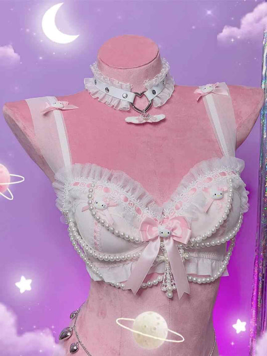 Y2K Pearl Kitten Lace Bra