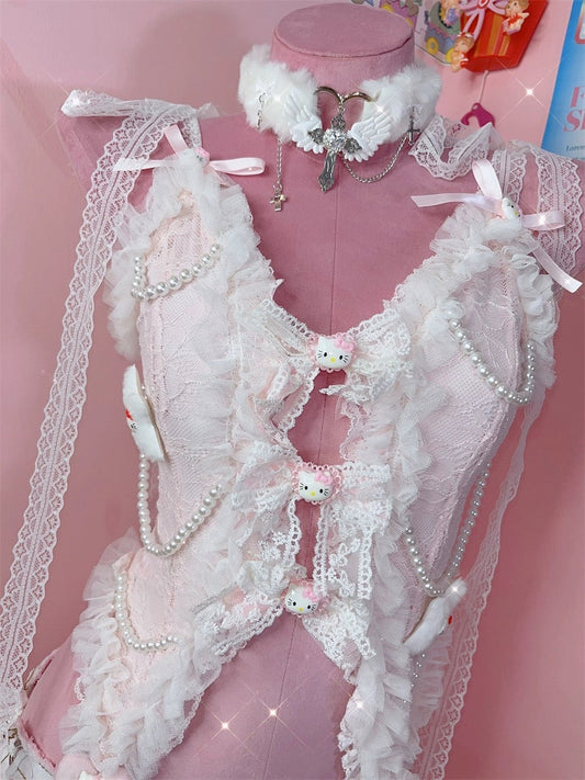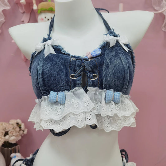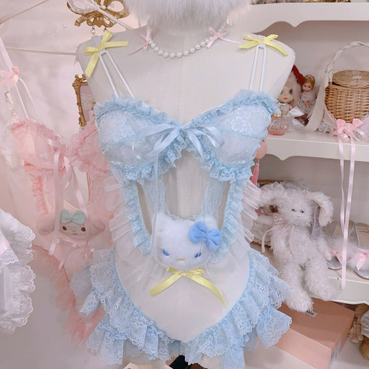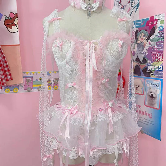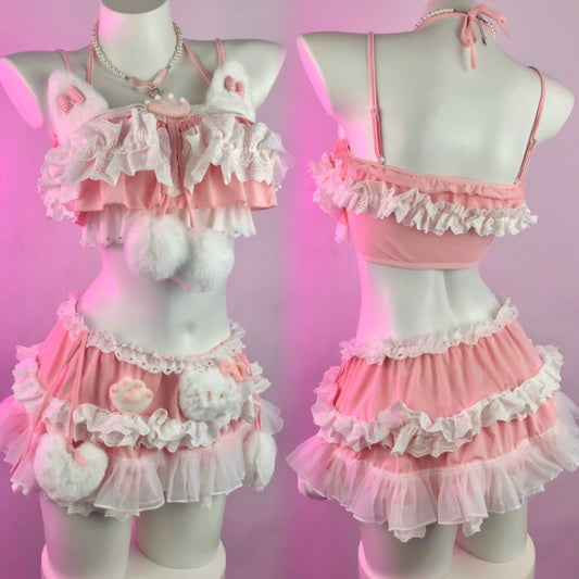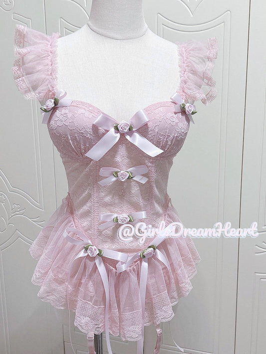 Asymmetrical Sloping Shoulder Ribbon Suit
