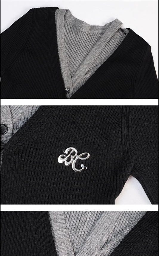Preppy Fake Two-piece Dark Coquette Long-sleeved Top