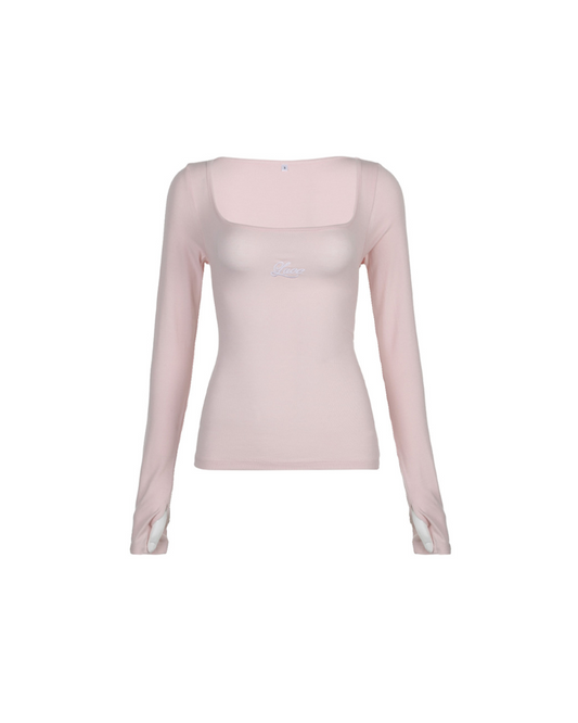 French Square Neck Pleated Pink Long Sleeve Top