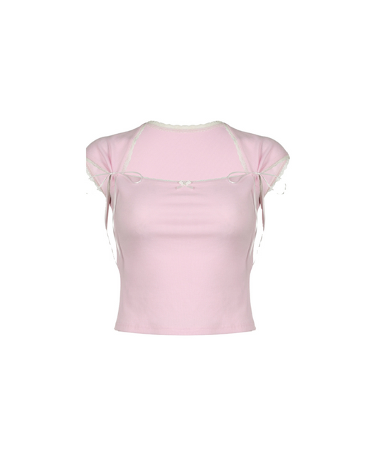 French Lace Bow Strap Coquette Shirts