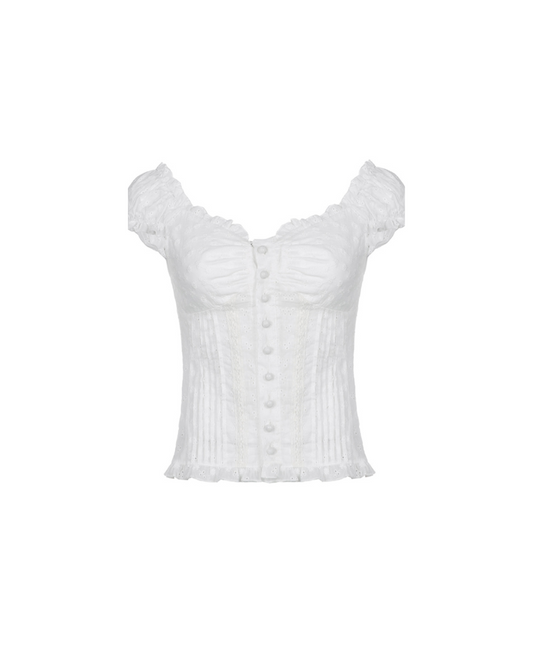French Jacquard Puff-sleeve Coquette Shirts