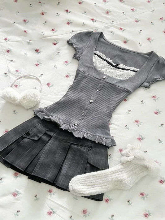 retro gray straps corset shirt