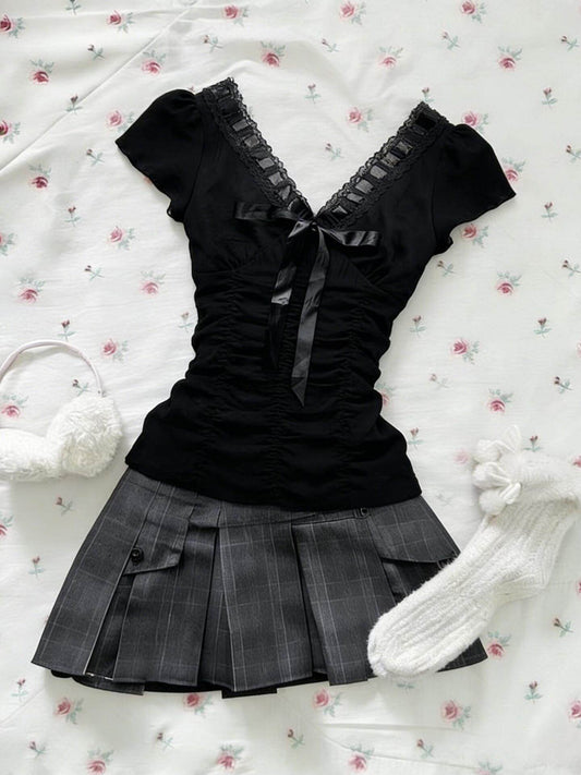 dark coquette bow lace shirt
