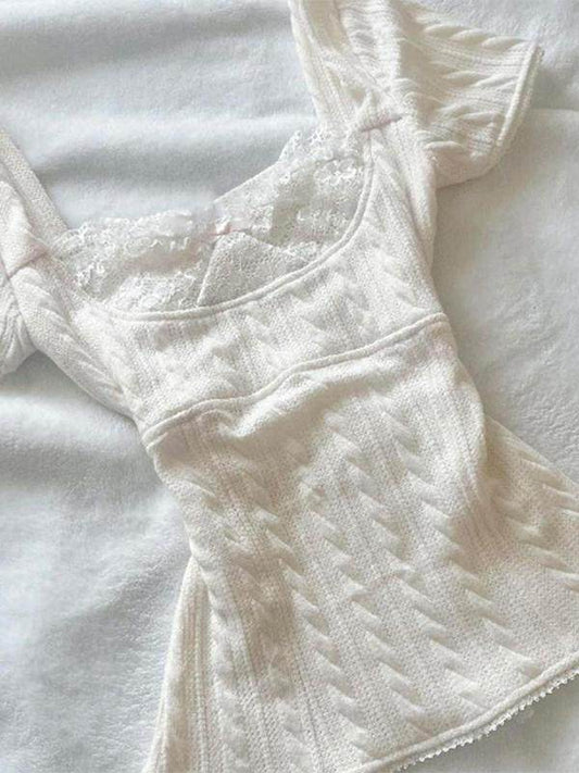 coquette floral lace trim shirt