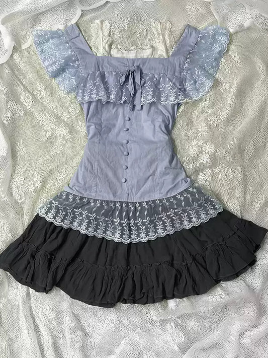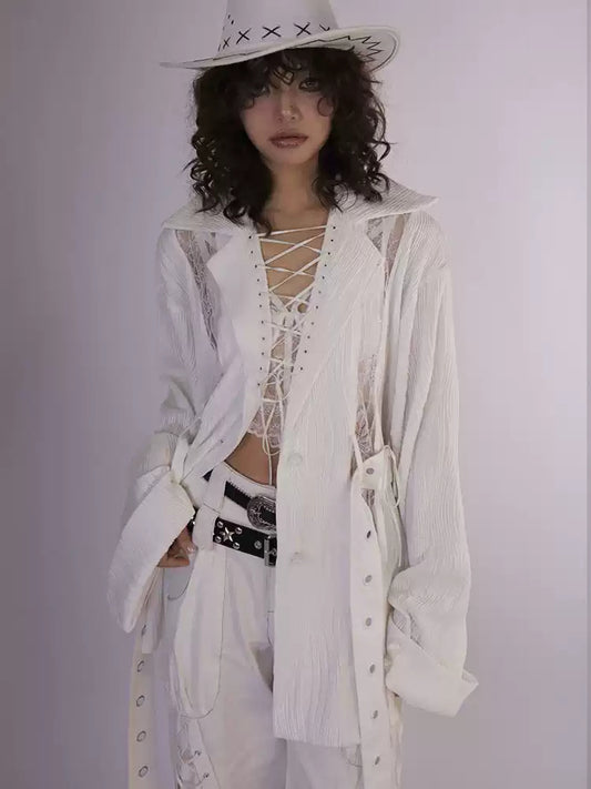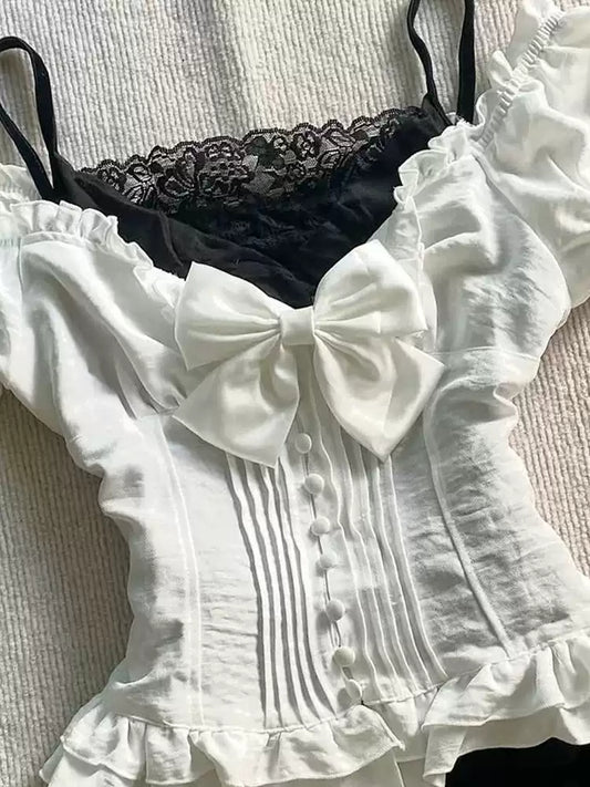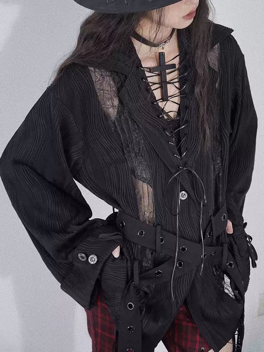 Dark Coquette Lace Polka Dot Chiffon Shirt