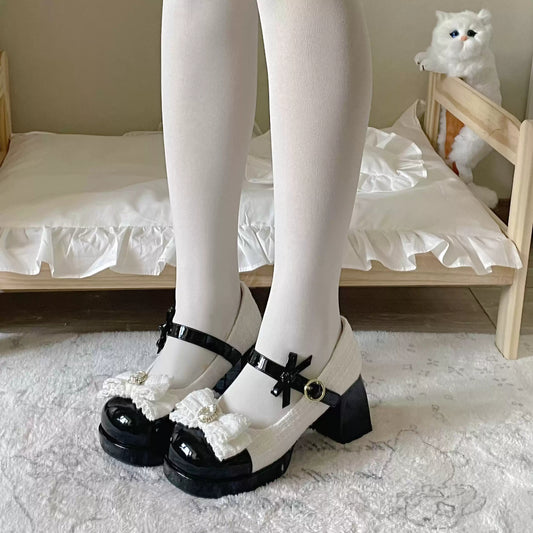 Sheep Puff Lolita Bow Platform Shoes