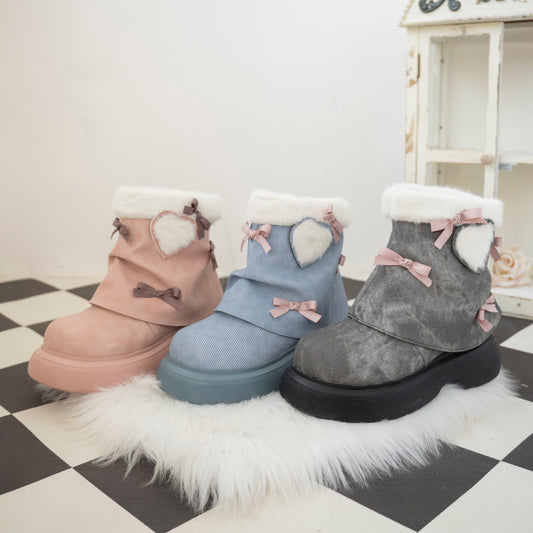 Furry Pink Bow Boots