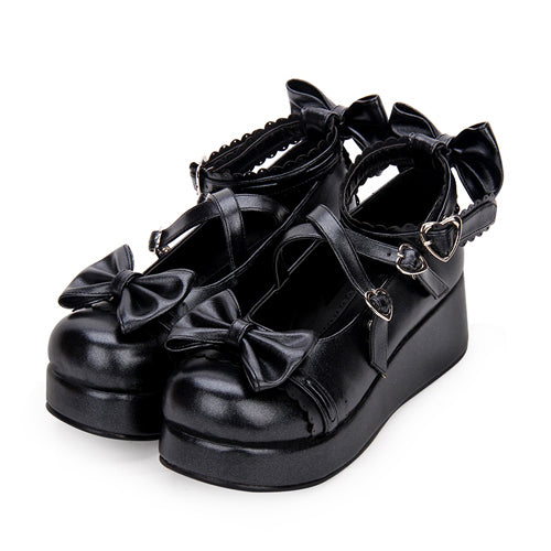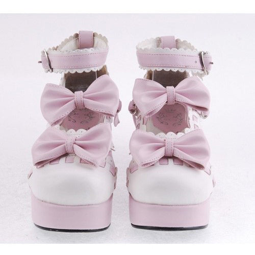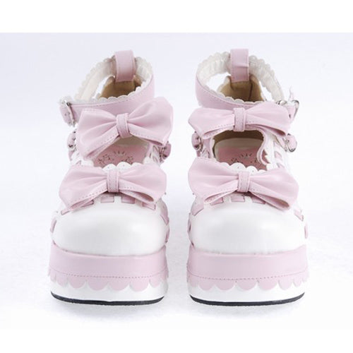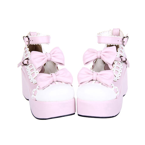 Pink Synthetic Leather Round Toe Ankle Straps Bow Decoration Platform Lolita Shoes