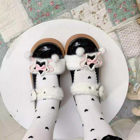 Star Bunny Ears Bowknot Furry Sweet Lolita Shoes 5 Colors