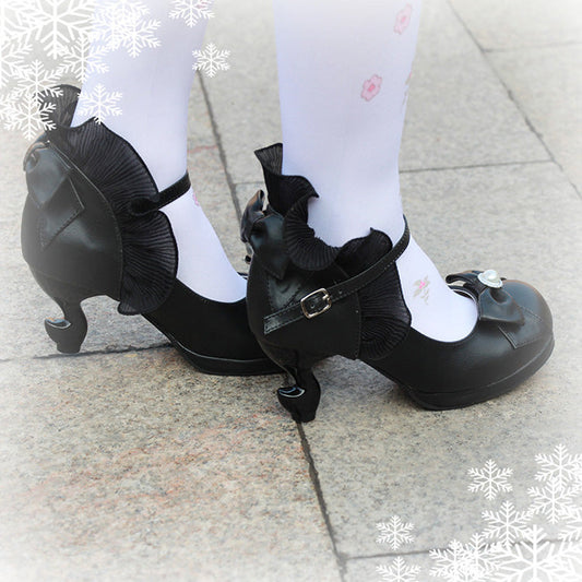 Bowknot Strappy Ruffle PU Sweet Lolita Shoes 5 Colors
