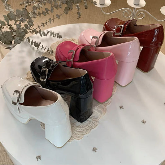 Pink Heel High Beautiful Synthetic Leather Round Straps Platform Sweet Lolita Shoes