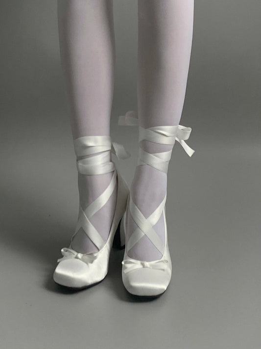 Sweet Bowknot Stitching Lace Princess Lolita High Heels 6 Colors