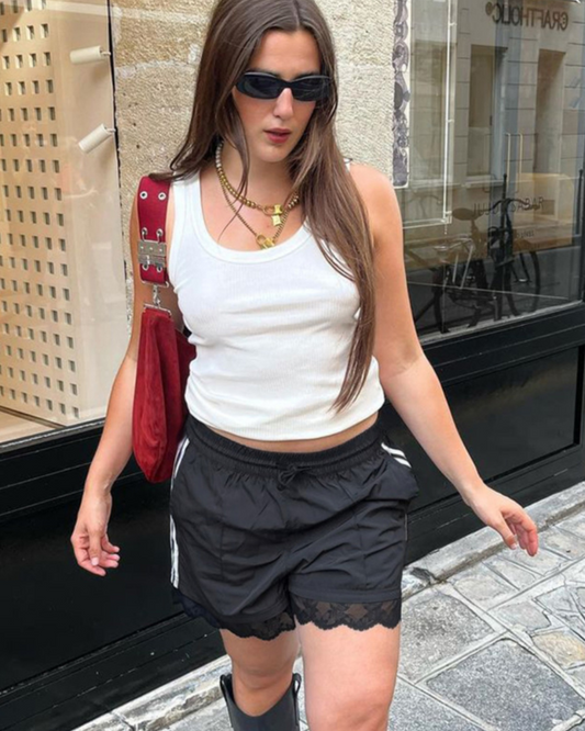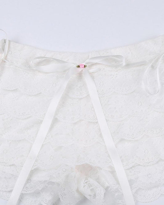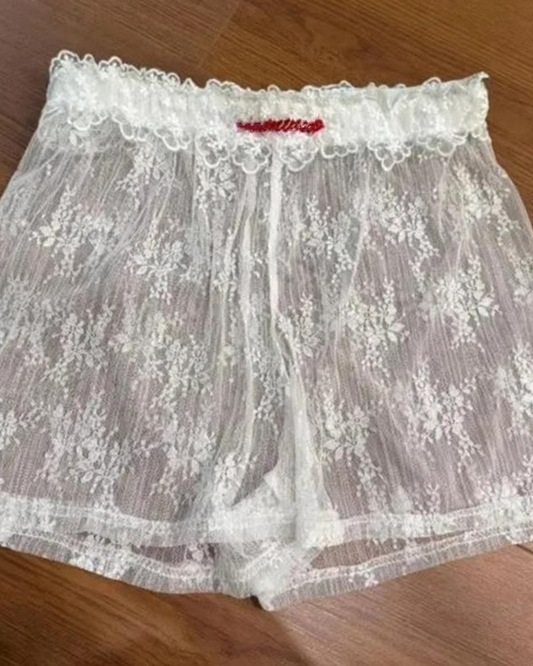 Embroidered Lace Leggings Design Striped Hollow Shorts