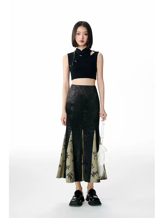 Retro Hand-painted Printed Fake Two-piece Tassel Skirt