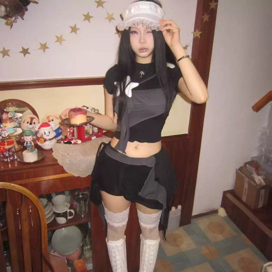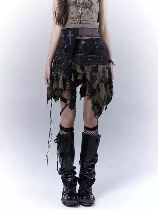 dark coquette lace splicing plaid cake multi-layer irregular long skirt
