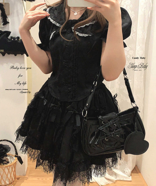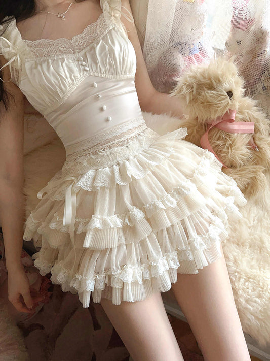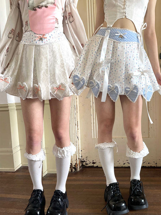 Angel's Tears Love Splicing Lace Pleated Skirt