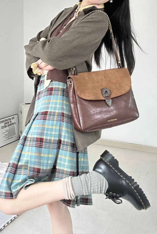 Preppy Aesthetic Plaid Woolen A-line Skirt