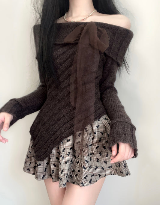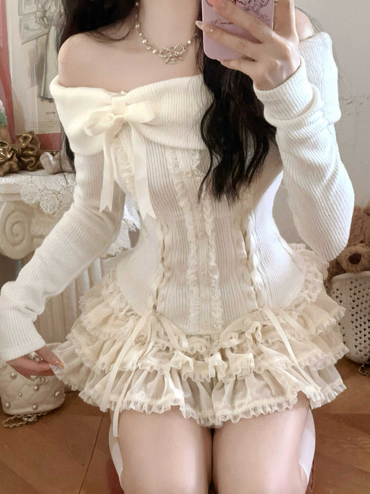 Soft Girl Bow Off-shoulder Coquette Sweater