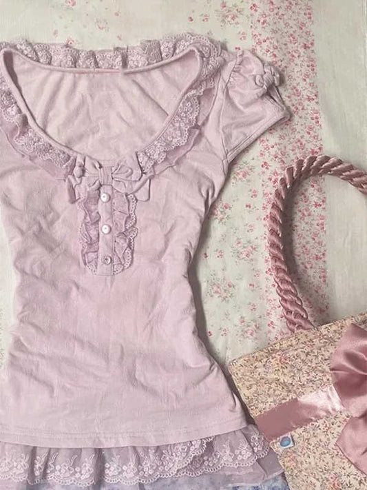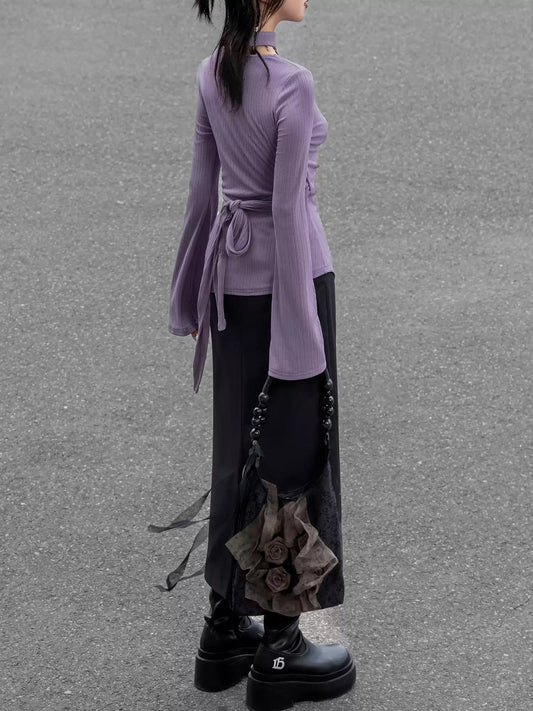 Rabbit brooch furry lace-up bow pom-pom shirt