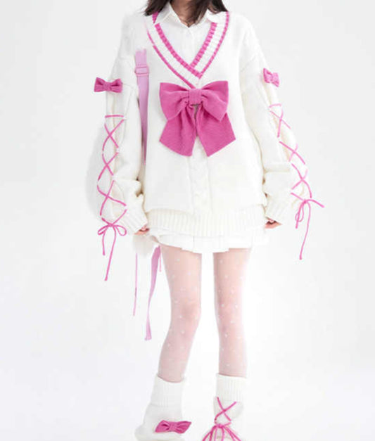 Coquette Pink Bow V-neck Sweater