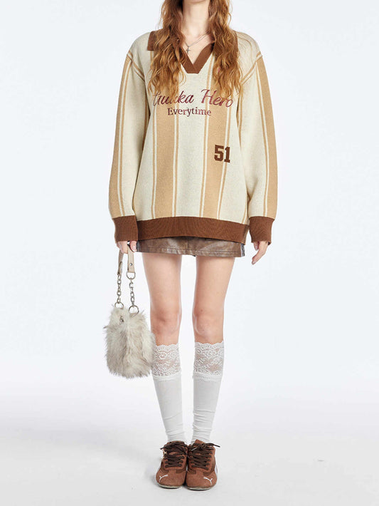 Preppy Retro V-neck Striped Sweater